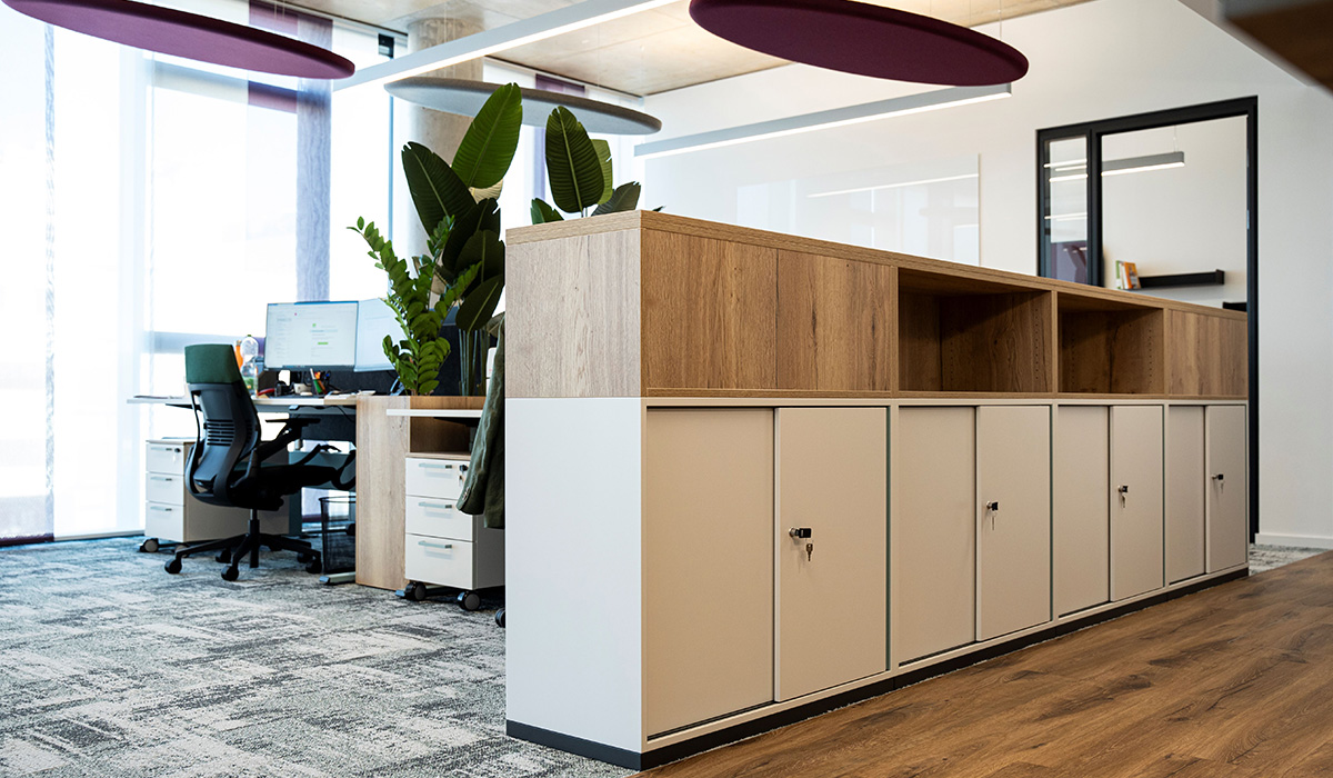 Im Alltag zählt Wandlungsfähigkeit: Stauraumzonen dienen gleichzeitig als Anlauf- und Kurzbesprechungspunkte – für schnelle Abstimmungen ohne Raumwechsel. Die Bench-Tische lassen sich bei Bedarf in vollwertige Einzeltische umbauen, sodass Teamgrößen und Aufgaben flexibel mitwachsen. Das reduziert Umrüstzeiten, steigert die Flächeneffizienz und hält Workflows schlank – eine smarte Lösung, die der dynamischen Kanzleiarbeit den Rücken freihält.
